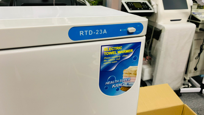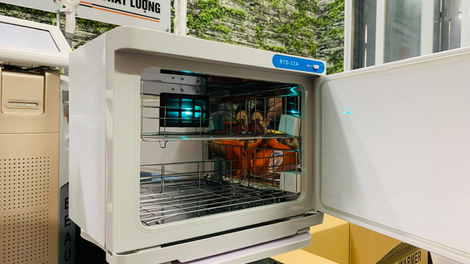 Tủ tiệt trùng khăn RTD-23A có khả năng giữ ấm liên tục ở nhiệt độ 70-85 độc C và có đèn UV cực tím tiêu diệt vi trùng trên khăn.